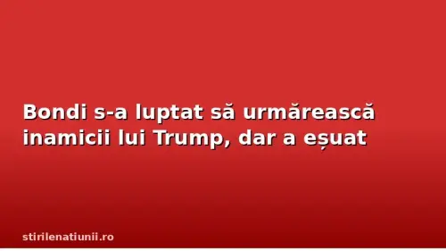 În ultimul an, Departamentul de Justiţie al lui Bondi a întâmpinat rezistenţă din partea judecătorilor, a juraţilor şi a propriei forţe de muncă în încercarea de a stabili conduita criminală a unui duşman Trump după altul.