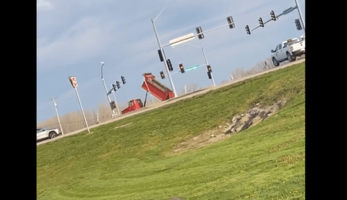 El a împărtășit un videoclip cu FOX 2 care arată un camion de gunoi cu patul ridicat luând în jos o lumină de oprire pe 141 la Creve Coeur Mill Road. "A spus câteva cuvinte alese și atunci am luat înregistrarea," a spus Basham.