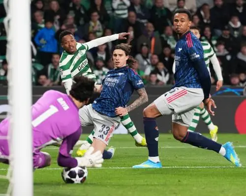 Zidul Arsenal îşi face treaba înainte ca Araújo să mai aibă un du-te, de data asta de la distanţă. Reluările arată că Raya are cele mai mici degete pe ea. 8.10pm BST 6 min: Araújo loveste postul! O trecere fantastică de la Diomande cu exteriorul piciorului său și Araújo este prin pe gol după ce bate capcana offside.
